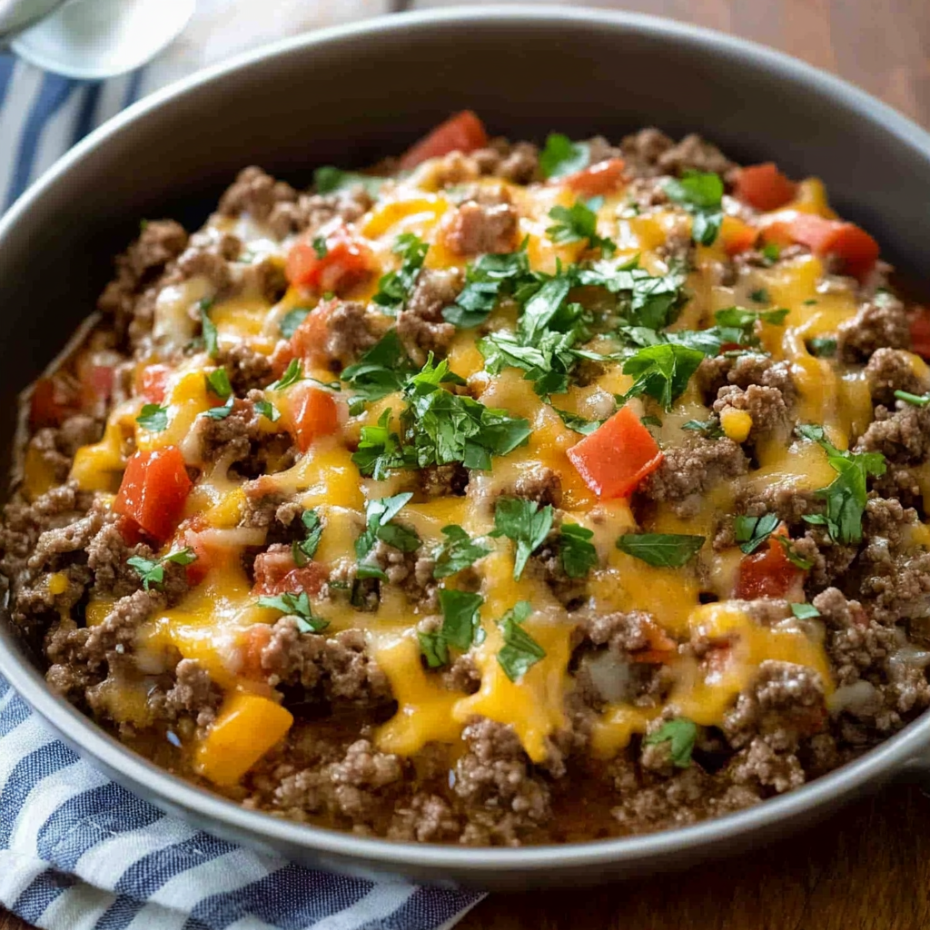 Keywords: Swap ground beef for ground turkey or chicken for a lighter option. Experiment with spices like smoked paprika for added flavor. Feel free to incorporate leftover vegetables into the mix.