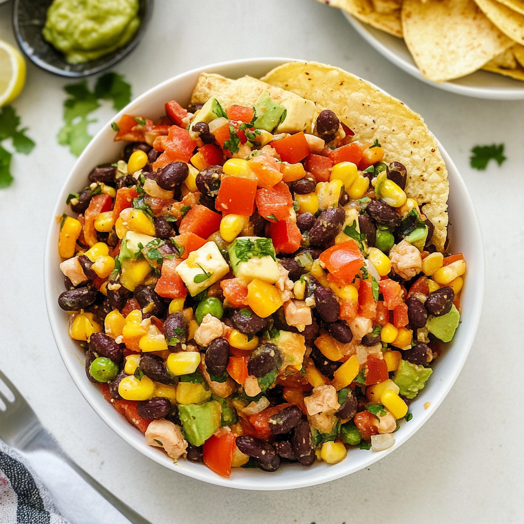 Prep Your Veggies: Start by rinsing your canned black beans and sweet corn until they’re clean and ready. Dice the red bell pepper and red onion into small pieces—aim for uniformity so every scoop has a bit of everything.