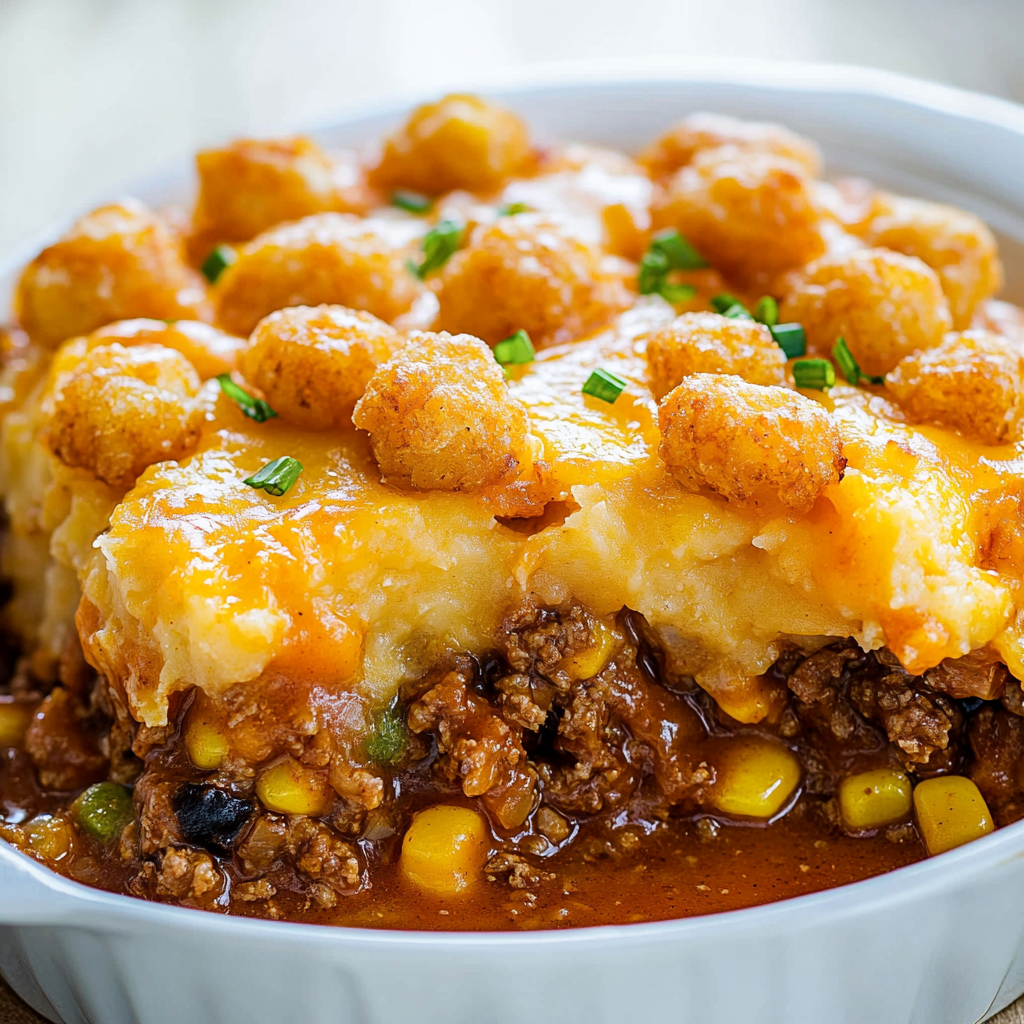 - The crispy tater tots on top provide a delightful crunch, while the savory filling warms the soul