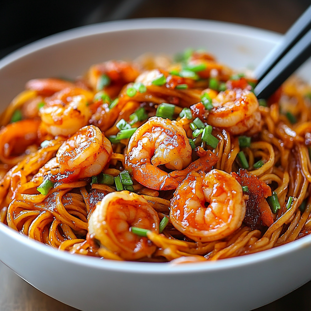 Start by marinating the shrimp while boiling noodles. Sauté garlic and ginger first, then add shrimp and sauce for optimal flavor.