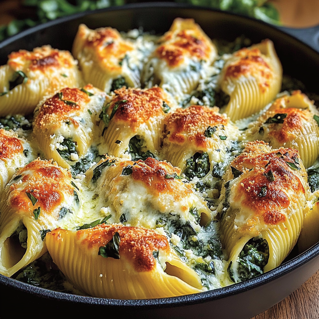 Indulge in the rich flavors of creamy spinach and feta shells, a delightful dish that combines tender pasta with a luscious cheese sauce. Perfect for family dinners or entertaining guests, this recipe is both easy to prepare and impressive to serve. Each bite offers a comforting blend of fresh spinach and tangy feta, making it a crowd-pleaser that evokes warm memories of home-cooked meals.