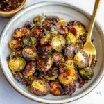 Start by roasting the Brussels sprouts until they’re golden brown. While they roast, mix balsamic vinegar and honey for a delicious glaze to toss them in post-cooking. This sequence ensures maximum flavor and texture.