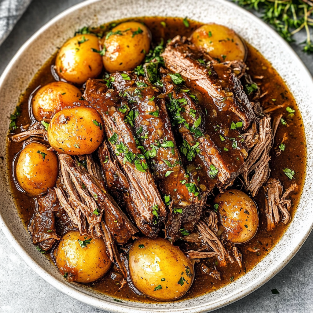 I remember the first time I made this pot roast for my friends. They walked in, and their jaws dropped at the delicious aroma filling my home. By the end of the night, we were all stuffed but happy, sharing stories while licking our plates clean.