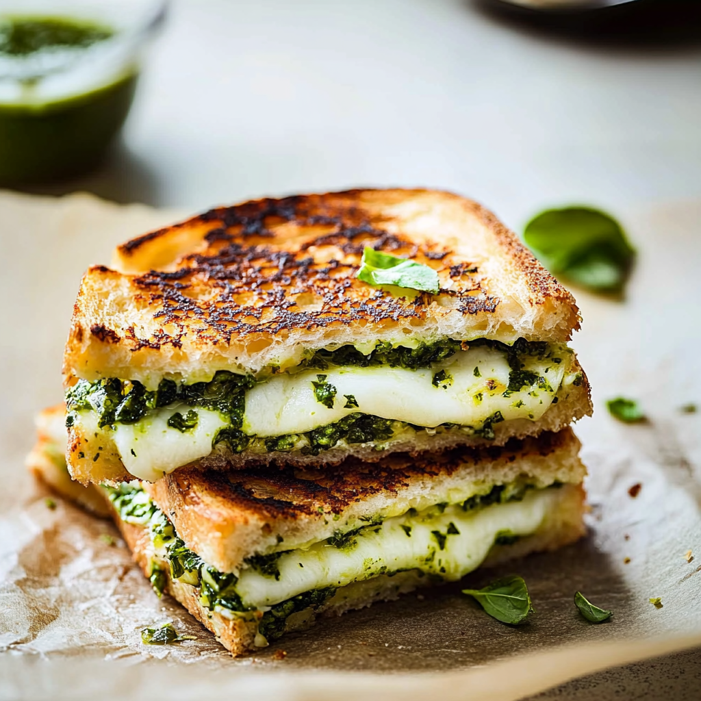 Indulge in a melty, herb-infused grilled cheese that combines fresh greens and creamy cheese for the ultimate comfort food experience.
