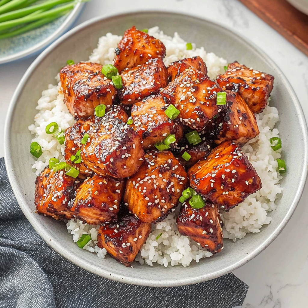 - 1 lb fresh salmon fillets, cut into bite-sized cubes
