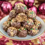 - Optionally, dip each chilled ball halfway into melted chocolate and sprinkle with crushed pecans or sea salt before the chocolate sets.