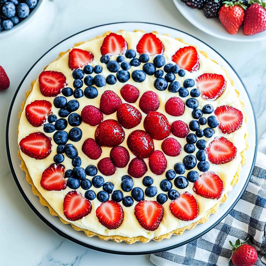 Keywords: To prevent a soggy crust, ensure it’s completely cool before adding toppings. Feel free to substitute fruits based on seasonal availability or add granola for extra crunch. Store leftovers covered in the refrigerator for up to two days.