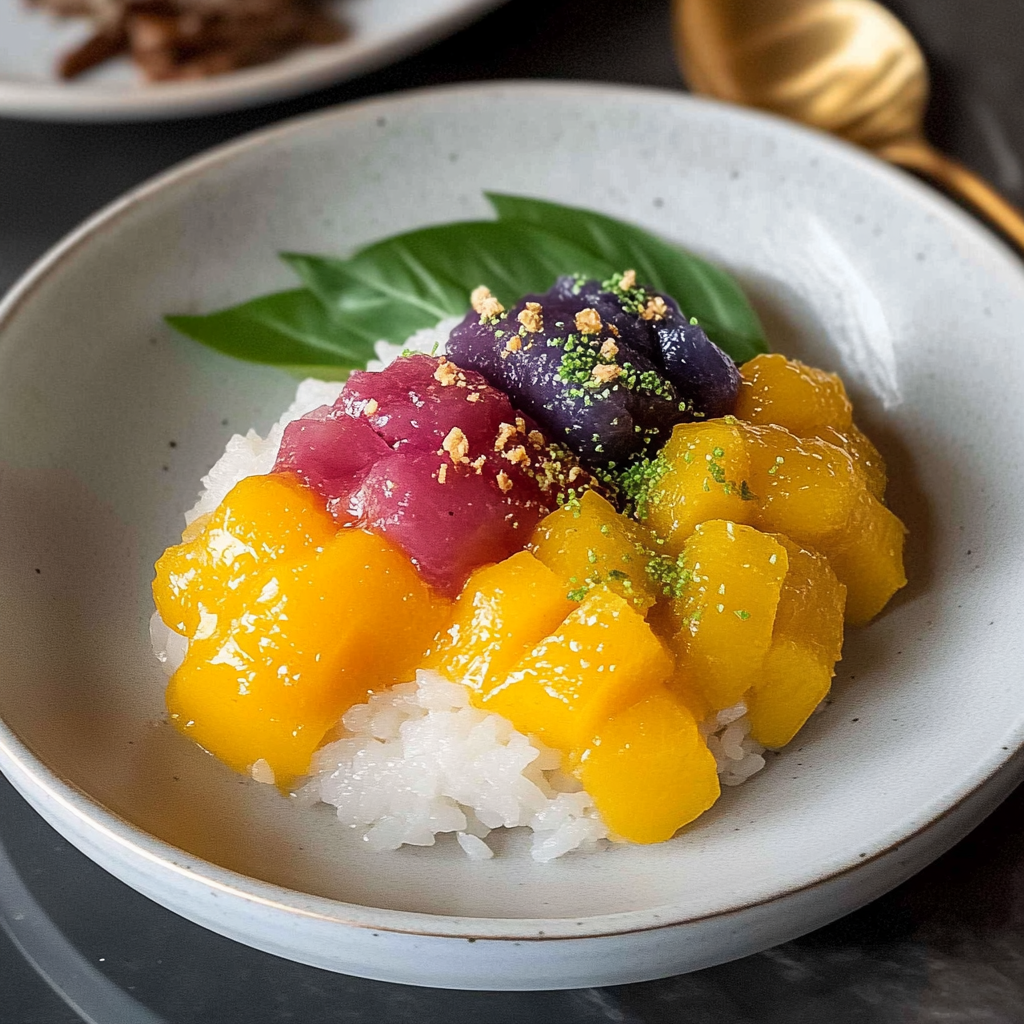Thai mango sticky rice is a delightful dessert that transports you to tropical paradise with every bite. This easy-to-make treat features sweet, sticky rice paired with juicy mango slices and drizzled with creamy coconut sauce, creating a harmonious blend of flavors and textures. Perfect for any occasion, it’s a visual showstopper that impresses guests or simply satisfies your sweet cravings.