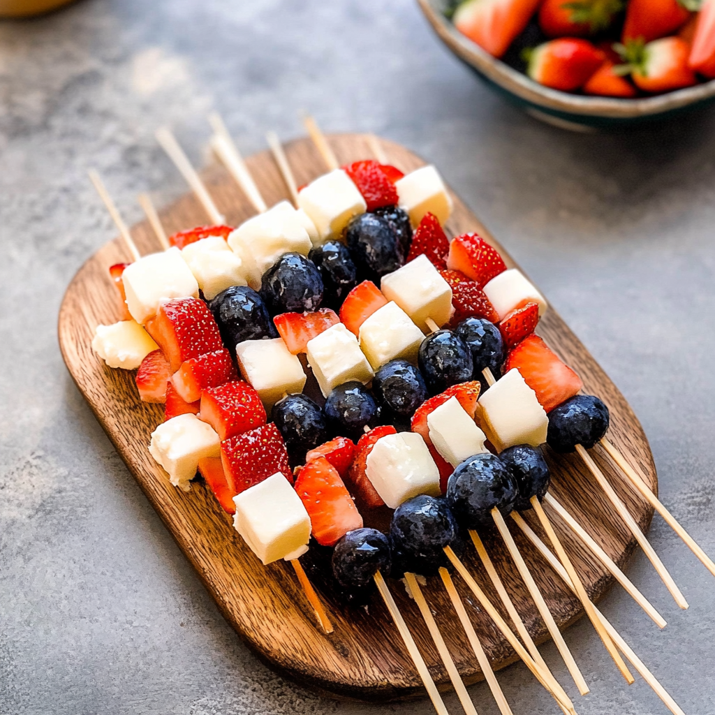 Vibrant Red, White and Blue Fruit Kabobs Recipe for Summer