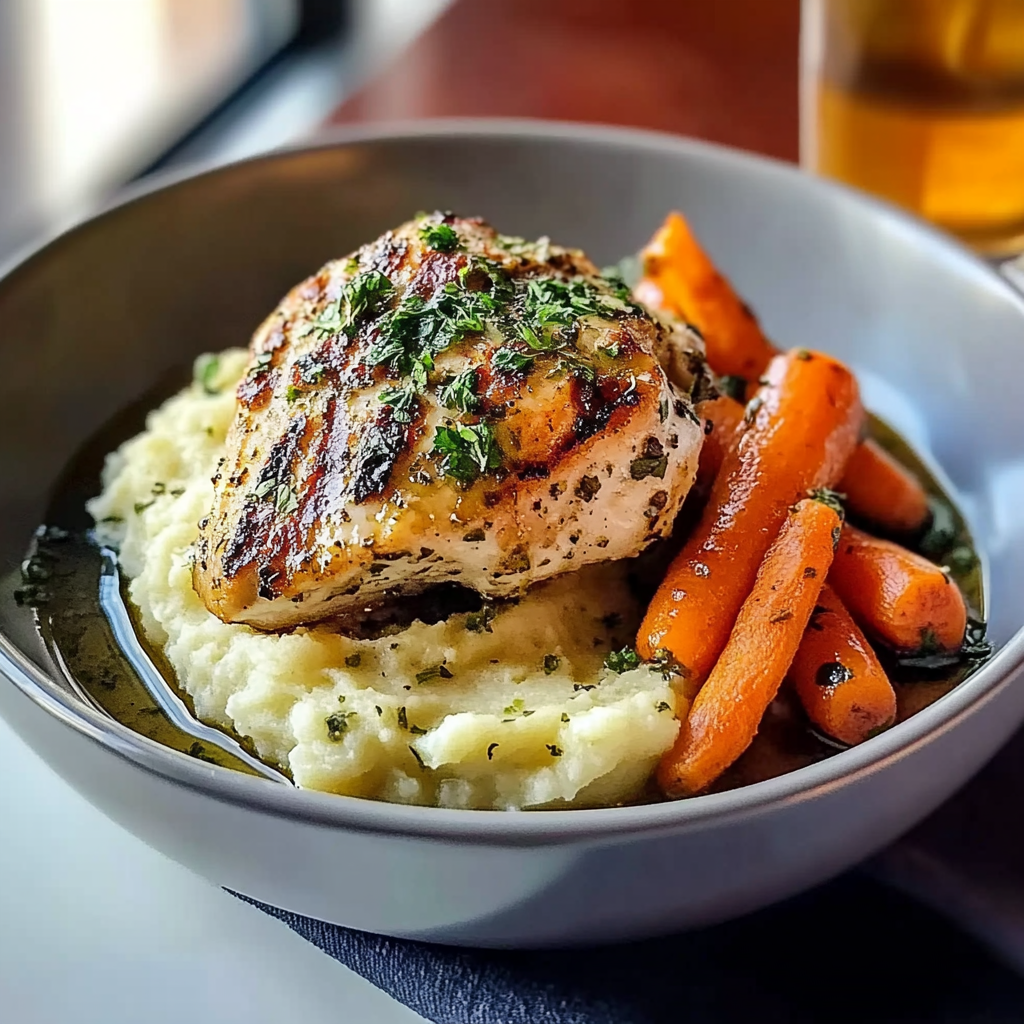 Irresistible Garlic Herb Chicken with Creamy Mash & Carrots