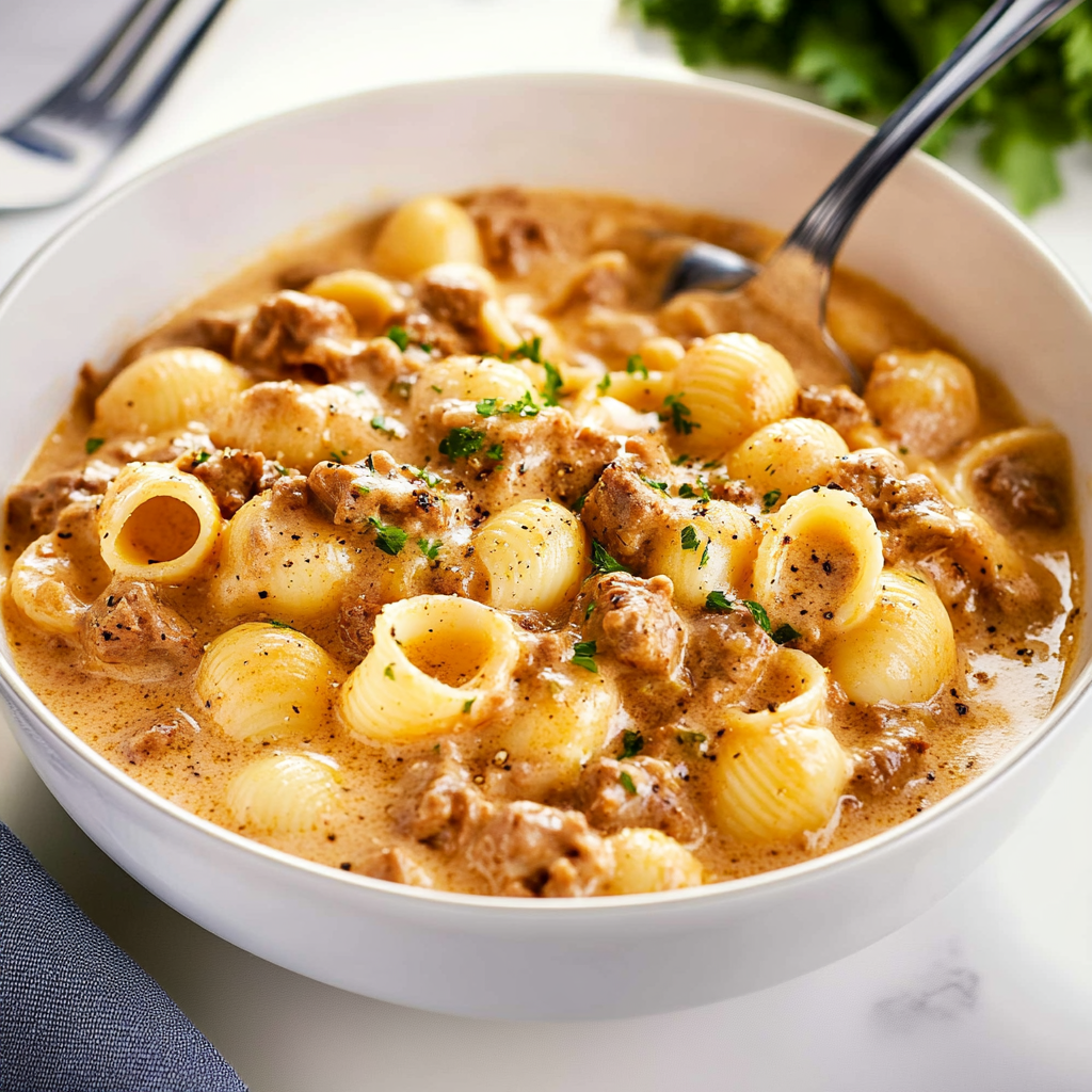 comfort food / creamy pasta / easy dinner / Hearty Meals / pasta dishes / savory recipes / smoked sausage