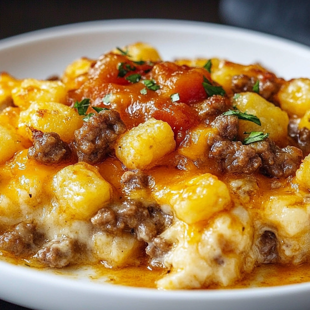 Keywords: For added creaminess, mix in sour cream or cream cheese before baking. You can also substitute ground beef with turkey or plant-based crumbles for a lighter option.